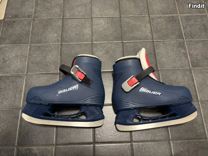 Säljes Bauer barnskridskor, innermått 16,5 cm, storlek 28/29. I mycket gott skick, varit enbart lite i användning. Säljes som obehövliga.