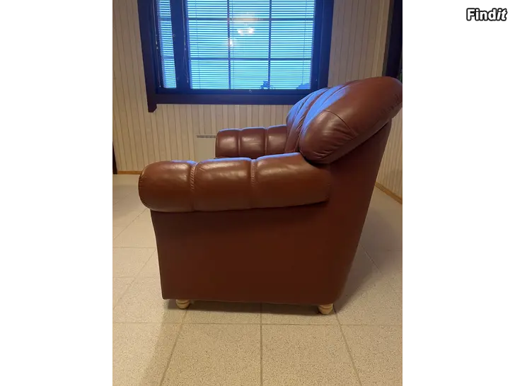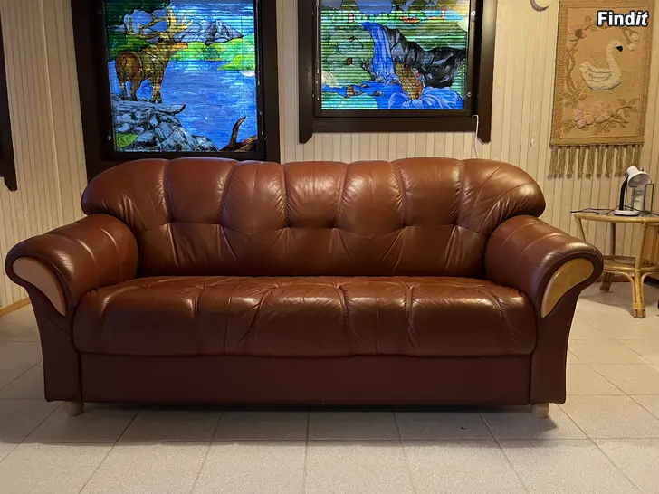 En 2 pers och en 3 pers lädersoffa säljes som obehövliga. Sofforna har flera år på nacken men är mycket gott skick eftersom dom stått i vår fjällstuga och inte använts så ofta. Bak, ner i kanten på ena är det ett mindre hål som kom vid transporten hem, inget som stör användningen. Hämtas från Övermalax. 150€ för båda sofforna tillsammans.