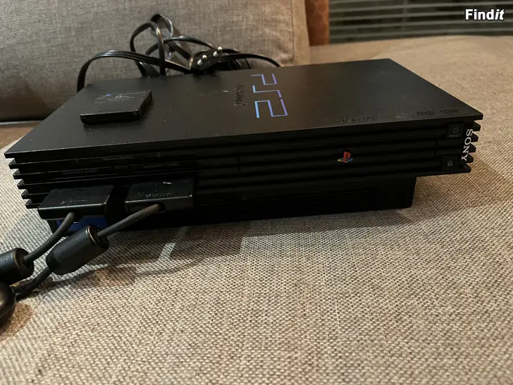PS2 med 2 kontroller, minneskort och fjärrkontroll samt klassiska gama spel som NHL 07 och 09, Paris Dakar Rally, City Crisis och Rumble Racing.