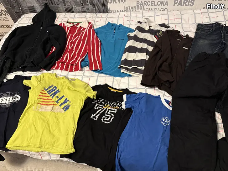 Bunt med pojkkläder, mest storlek 140… kläderna är hela och rena.