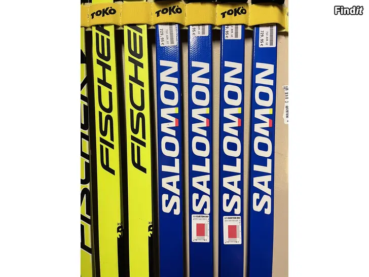 Salomon Slab Red Skate 187cm skidor för ca 65-75kg åkare. Använda ca 30km, som nya. Skyddsparaffin på. Repfritt botten med fabriksslip. NIS platta och äldre Rottefella bindning. Pris 280€ paret. Paren är väldigt lika. Finns också äldre Fischer speedmax skate 187 för kallare fören för 200€. ej på bild