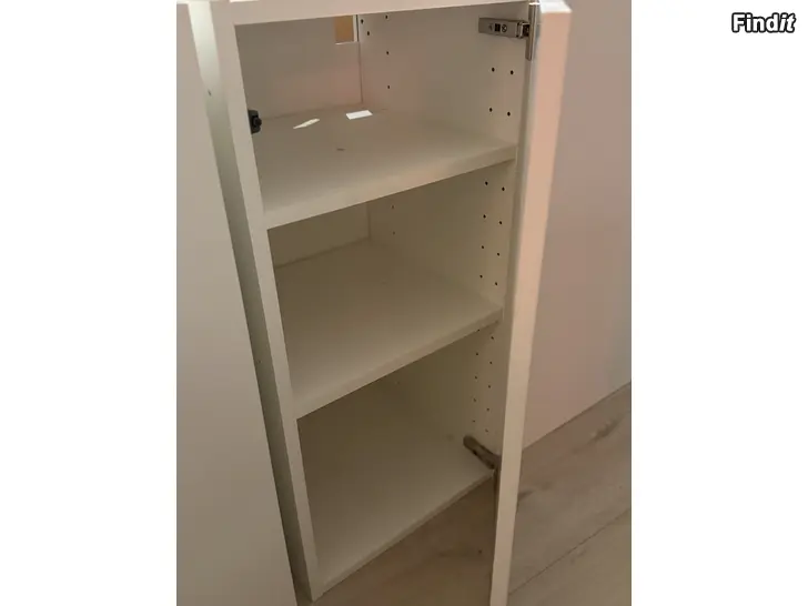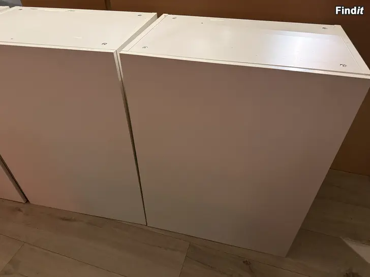 4 st vita överskåp med dörrar säljes, 2 st 60 cm breda och 2st 40 cm breda. Stommens djup 36,5 cm och höjd 80 cm. Hyllor finns samt Ikeas tryck-och-öppna-beslag i alla skåp. Stommar Metod och dörrar Vallstena. Pris: 60 cm 30€ per skåp 40 cm 25€ per skåp Alla skåp 80 euro.