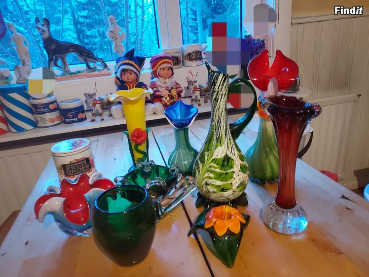 Den röda vasen med klar fot är Svensk Design i Murano stil. Av Bo Bergström.