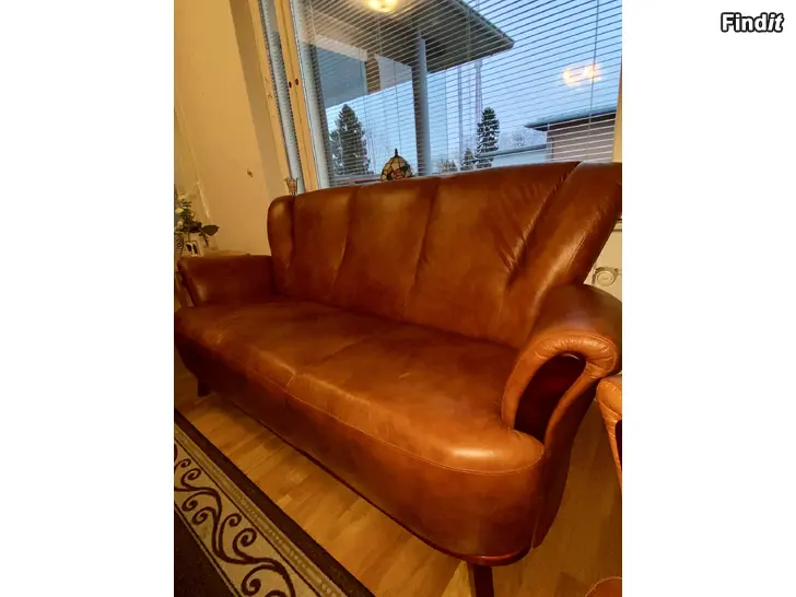 Säljes läder soffgrupp i bra skick. Bordet fås med om man vill ha.