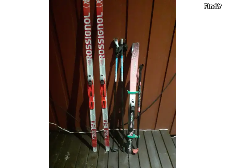 Skidor med nnn bindningar Madshus 110cm stavar 90cm. 35€ Rossignol 160cm stavar 115cm 35€