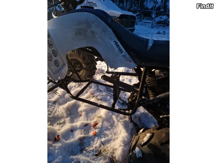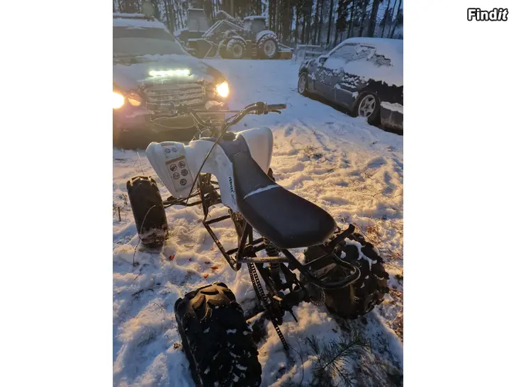 Här är en yamaha yfm90r som är ombyggd till ha en monkey type motor. Ombyggd motor fästen.Ny målet ram och ny kopplings handtag, ny grips. Alla bushingar är nästan ny. Ny sån här fyrhjuling är 3000€ Priset går att diskutera om