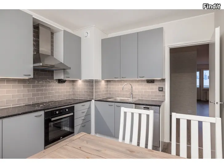 Uthyres en helt nyrenoverad tvårummare på hisshusets översta våning 6/6 på Skolhusgatan i Vasa centrum. Lägenheten har totalrenoverats med nytt kök, nytt badrum, nytt golv och nya ytor. Ingen har bott i lägenheten sedan renoveringen. En ljus och rymlig lägenhet som går genom huset i bostadsbolaget. Utsikter i två riktningar och en inglasad balkong mot väster.