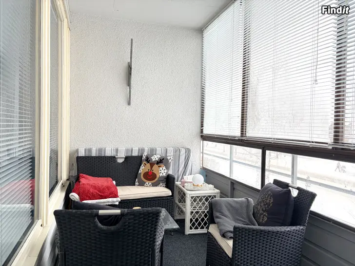 Bostaden har en bostadsyta om 48,5 m2 och omfattar kök, vardagsrum, sovrum och badrum. I anslutning till vardagsrummet finns en inglasad balkong med utsikt västerut, mot Närpes stadshus. Sovrummet vetter mot öster.