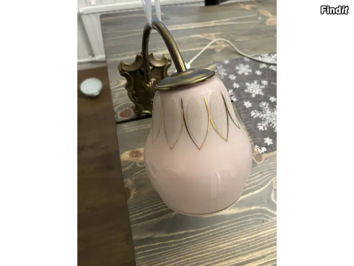 Vintage-tyylinen messinkirunkoinen seinävalaisin vaaleanpunaisella lasikuvulla.