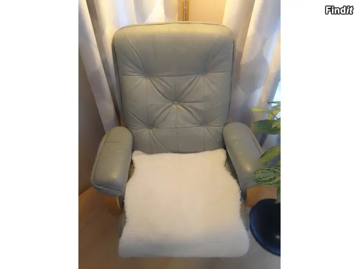 Snurrfåtölj i äkta läder, ställbar lutning. Underredet är bok. Konstfårskinnet som syns på den ena bilden ingår om man vill ha det.
