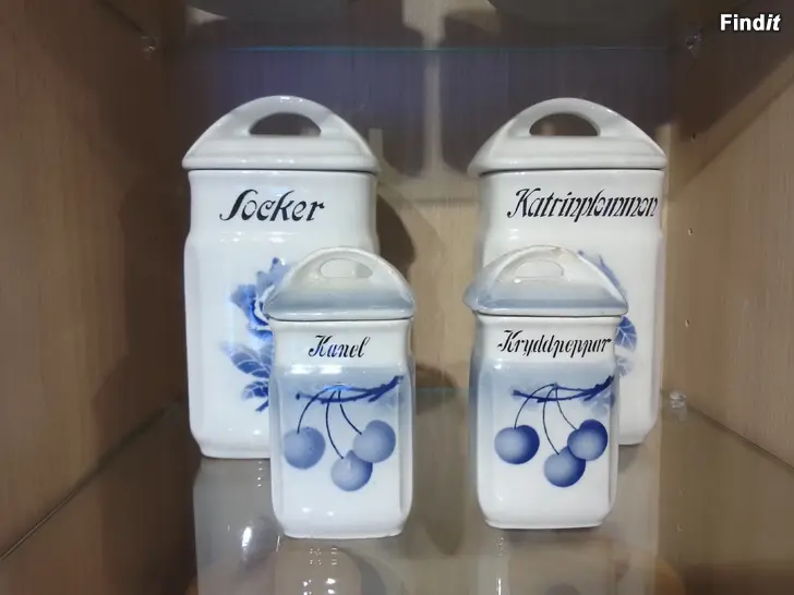 Bildernas porslinsburkar för kryddor o torrvaror säljes som paket, 30 e för allihop.