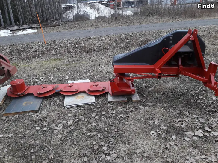 Tallriksslåttermaskin, arb.bredd 185 cm. Bra skick. Servad o genomgången, ny rem, lager bytta, nya bett. Balken hel o rak. Ev. byte söndrig slåttemaskin eller schaktblad till traktor. Även avbetalning. Fråga om hemtransport. Pris 1000 € + moms 255 € = 1255 € Tel: 0400692317