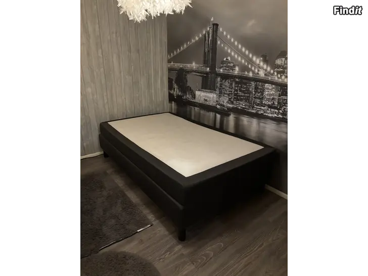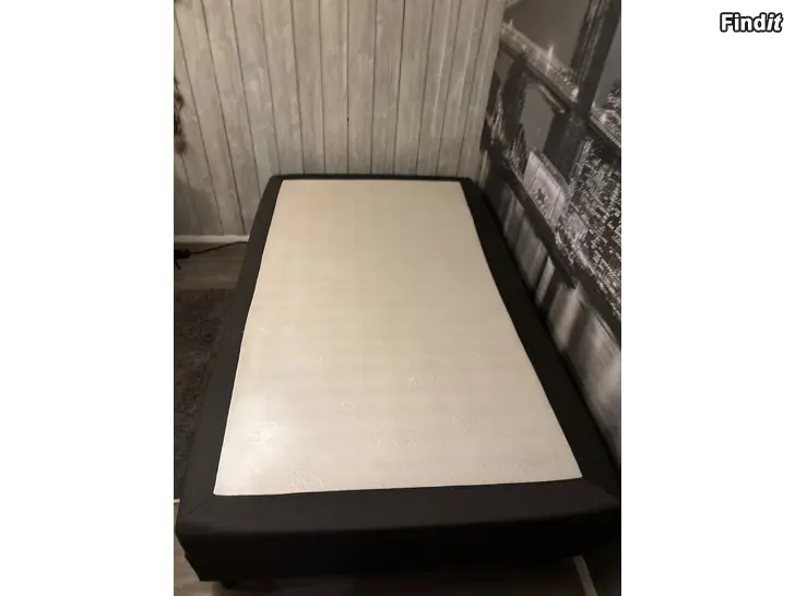 Säljes överlopps 120cm bred säng i bra skick! Ingen bäddmadrass medföljer.