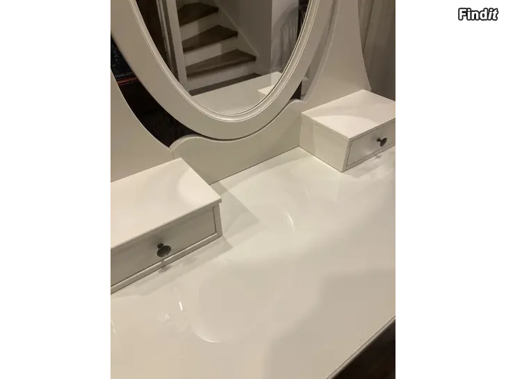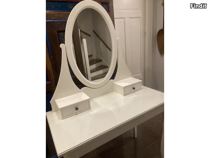 Vackert IKEA Hemnes spegelbord med två lådor och glasskiva. Använt men i bra skick. Nypris 300 e, säljes för 90 euro.