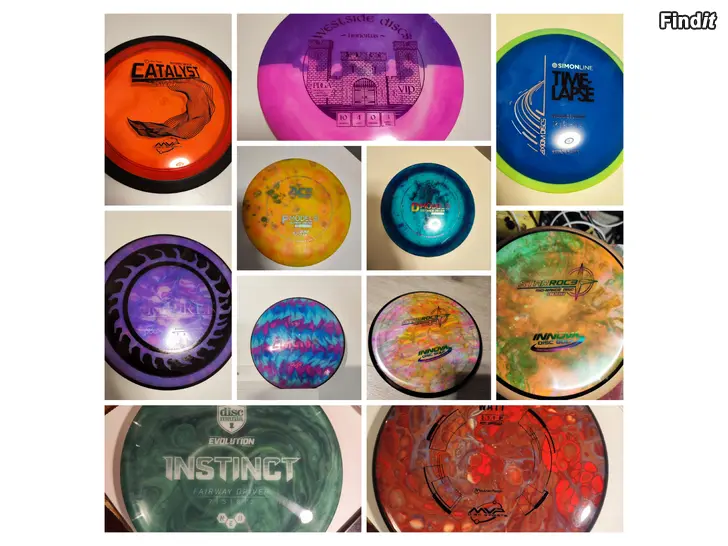MVP Catalyst testad några kast Axiom Discs Time Lapse NY 2kpl Innova Star Roc3 NYA Westside Discs Linnoitus 9.5/10 Prodigy x 2 dura och pro flex testade Discmania Instinct NY MVP Watt NY Discmania Enigma 9.5/10 Latitude 64 Explorer 9/10