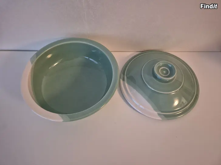 Kultakeramiikka form med lock. Oanvänd. I fint skick. Diameter 22 cm, djup 8 cm. Höjd med lock ca 15 cm. Katthushåll. Finns I Smedsby.