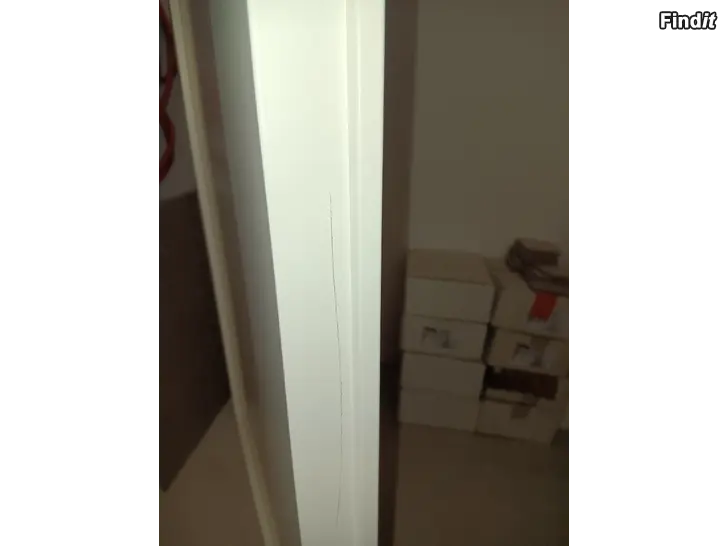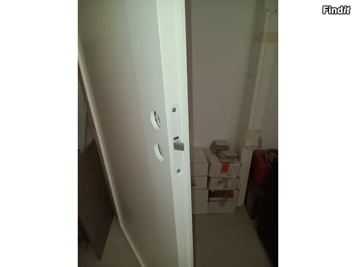 Vit innerdörr utan handtag och dörrkarm. Nyckel medföljer. Oanvänd men har skada bild. Bjud.