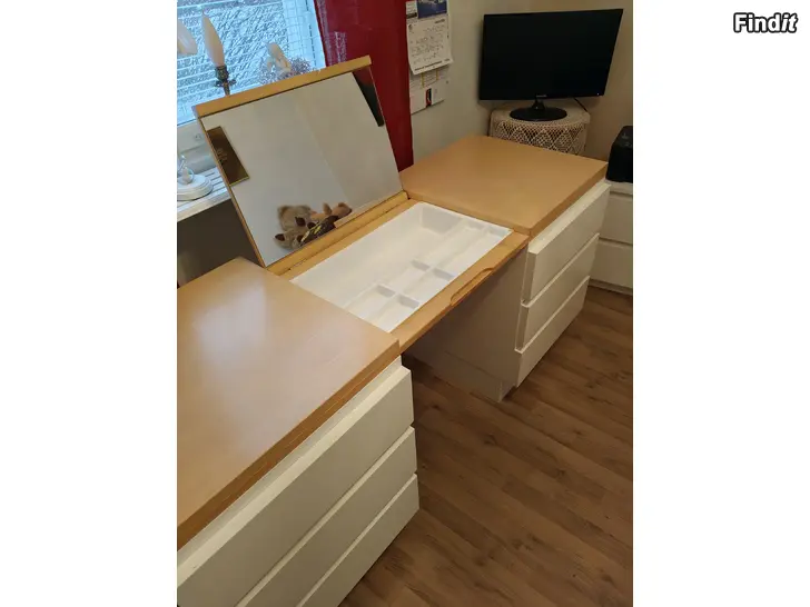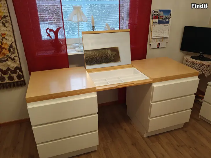 Muurame skrivbord/sminkbord säljes. I använt, men bra skick. Mycket förvaring.