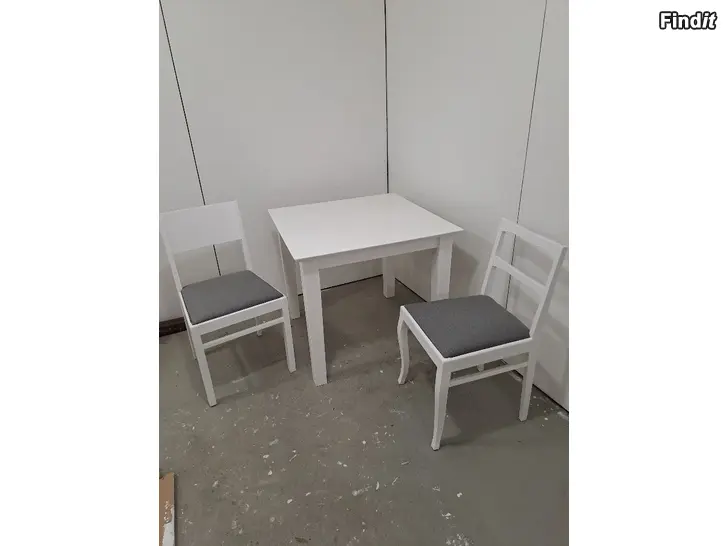 Vitt bord nymålat 80 x 80 x 75 69 € Vit pinnastol 30€ Vitt fast ryggstöd med grå tyg nya 18 € Vit köksstol med öppet ryggstöd, grp tyg nya 18 € Jakkara, pall 10€ Om du köper ett helt set justeras priset därefter. Alla är nymålat du kan också köpa separat