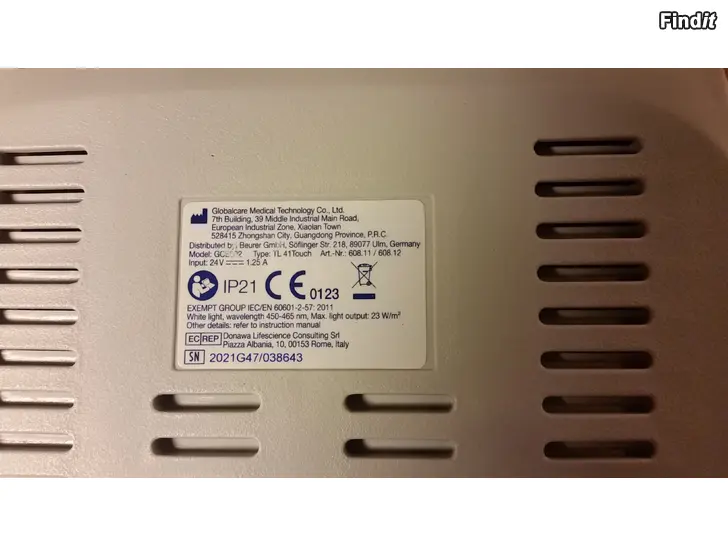 • Teho 10 000 lux 20 cm etäisyydeltä, 5000 lx 35 cm ja 2500 lx 50 cm