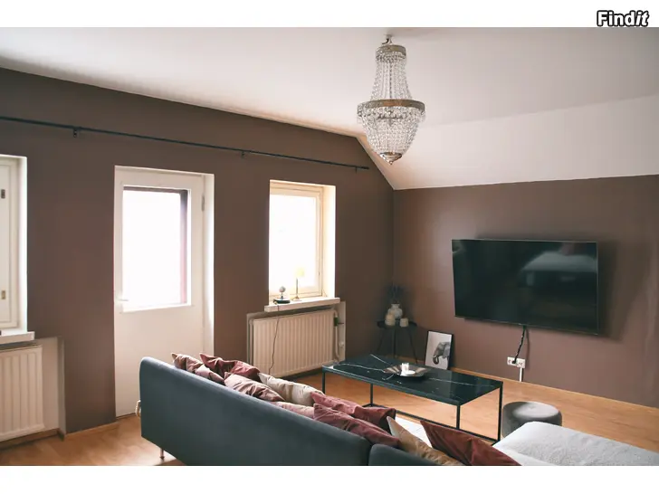 Lägenheten som uthyres har en boyta på ca. 80m2 och består av bostadens vindsvåning