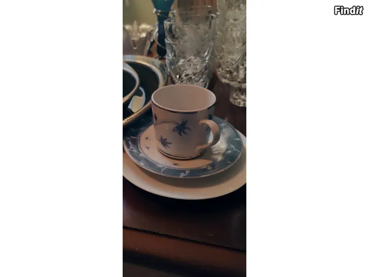 6 muggar och 6 fat i bra skick. Med också 6 vita assietter.