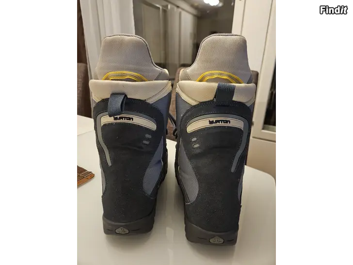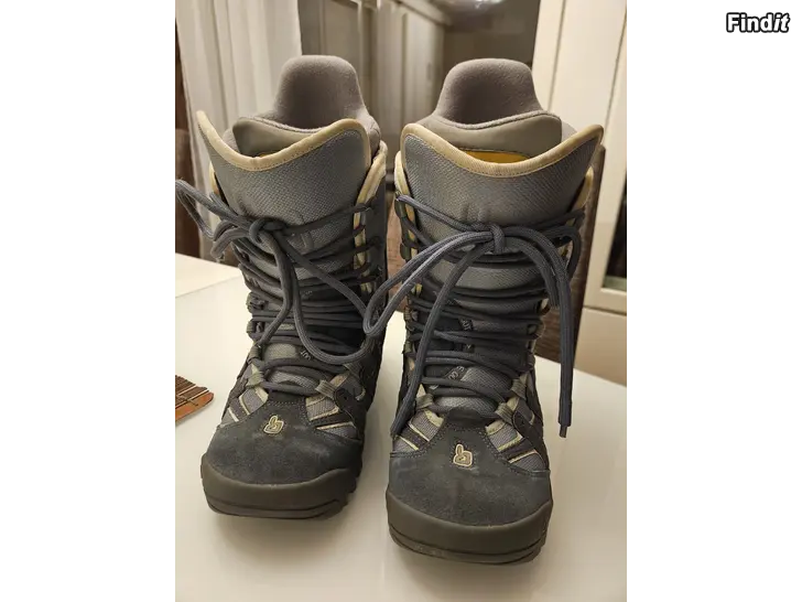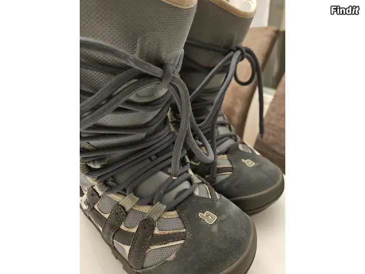 Använda Burton snowboardskor storlek 39. Storleken liten, passar bättre till en person med skostorlek 37-38. Skorna har två spänningsmöjligheter, inuti och utanpå.