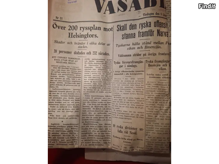 En låda full med vasabladet och jakobstads tidning från 1944. Hör av er vid intresse!