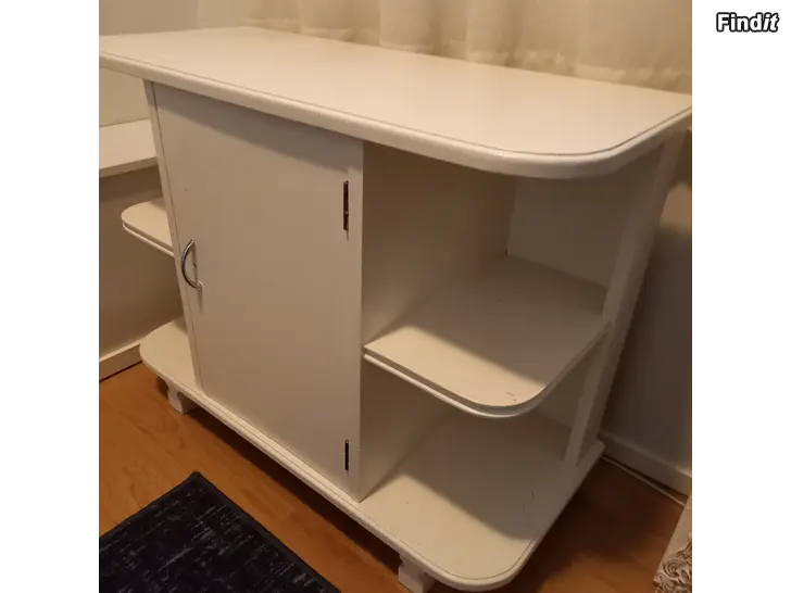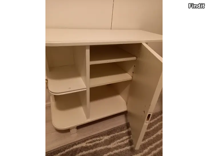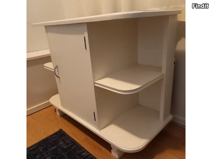 Myydään puinen, funkistyylinen hylly-lipasto. Erittäin siisti ja tukeva. Säädettävät hyllyt. Valkoinen. Vetimen vaihtamalla tai muuten tuunaamalla vaihtuu ilme. Ollut aina sisätilakäytössä. Lev. 80/ syv. 35/ kork. 63 cm. Vain nouto / Käteinen tai MobilePay.