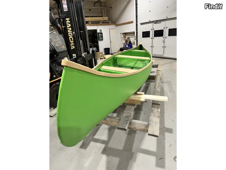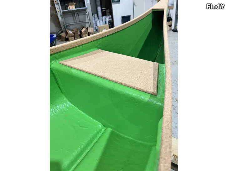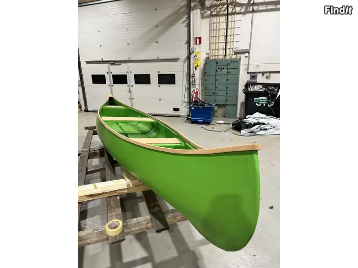 Restaurerad kanot säljes. Kanoten har blivit förstärkt med glasfiber i köl, samt blivit målad med topcoat. Även mittbänken är ny. Sittytor samt reling har blivit beklädda med marinedecks kork. Måtten är 490cm x 82cm