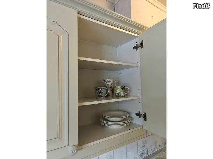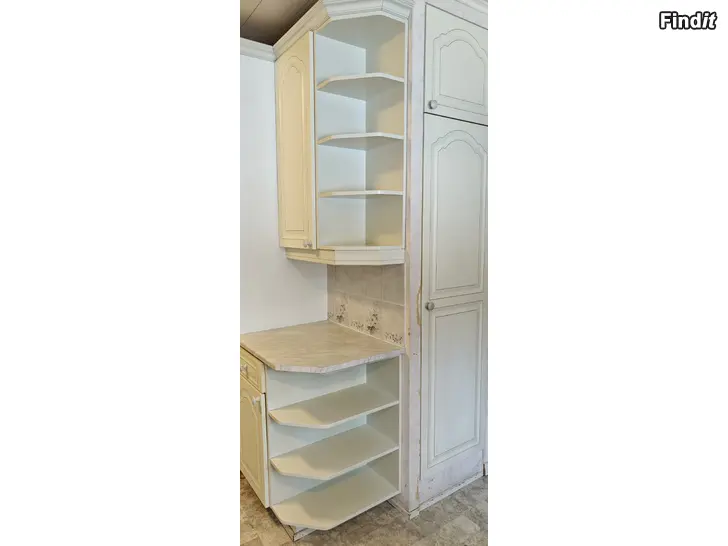 Köksinredning med 30 år på nacken säljes för annans räkning. Köksstommar, dörrar, lådor, arbetsyta och listar. Allt i bra men använt skick. Många lådor och skåp. Inga vitvaror ingår. Diskho + kran säljs skilt. Fler bilder i kommentarerna. Kommer att plockas ner de närmaste veckorna. Budgivning. Startpris 50€. Ta gärna kontakt för mer information och bilder. Finns i Nykarleby.