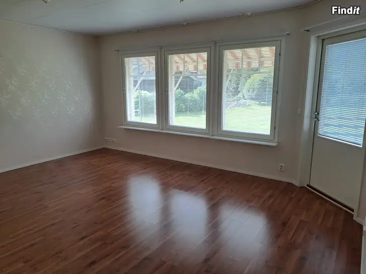 3rum+kök+badrum med bastu, 78,5 m2. Eget biltak och varmförråd. Hyra: 720€/månad + vatten enligt förbrukning förskottsavgift 20€/person/månad. Eget elavtal och hemförsäkring. Hyresgaranti: 1 månads hyra.