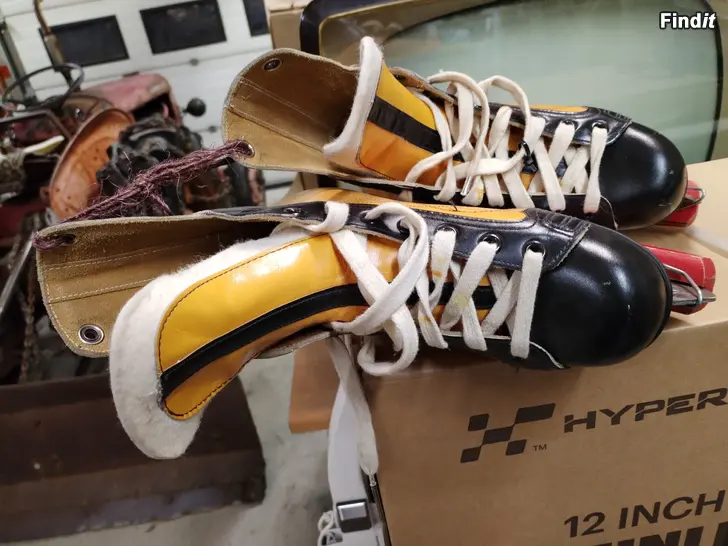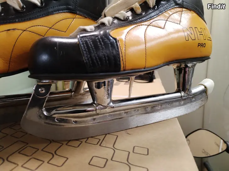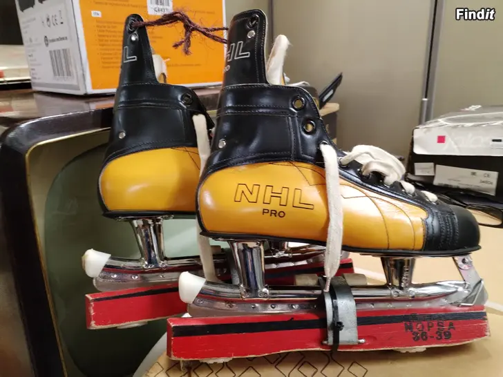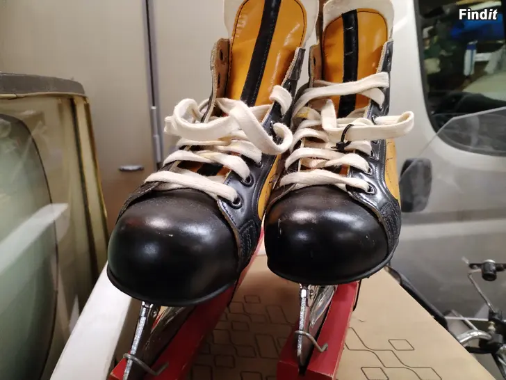Käyttämättömät jääkiekkoluistimet -70 luvulta , Made in Canada , NHL PRO. Koko n. 36-37, en löytänyt kokonumeroa. Komeat vaikkapa keräilijän seinälle...tai jalkaan...