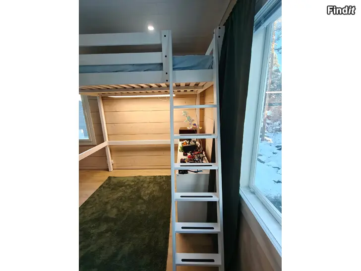 Myydään n. 4kk vanha valkoinen parvisänky +patja. Meillä tämä ehti olla vain viikon, kun todettiin liian suureksi. Todella siisti kunto. Tikkaat saa kummalle puolelle tahansa. Yläkaiteessa ollut vielä korotettu laita, jonka saa halutessaan mukaan. Tästä kahdet ruuvin jäljet kuva.