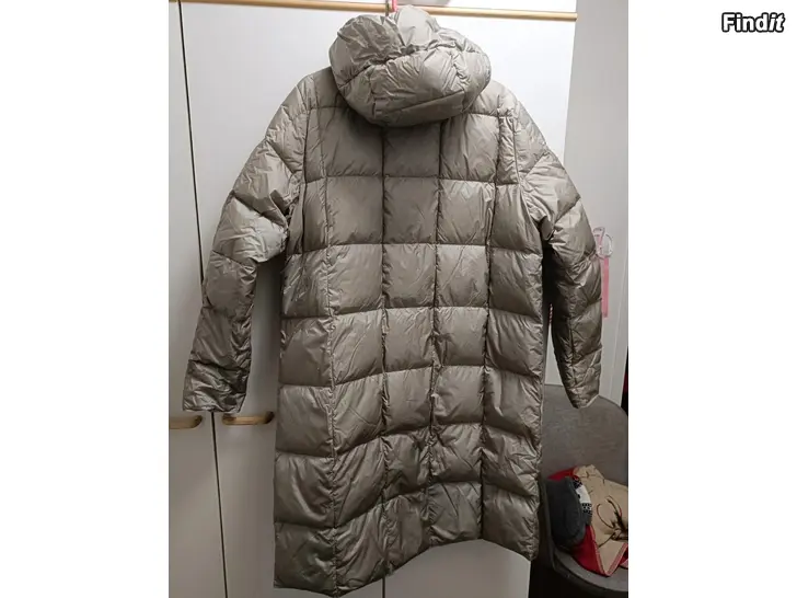 Shamppanja väriltään. Kunto hyvä , kauluksessa muutama meikkitahra joista kuvat. Kai-kai n.64cm Niska-helma n.108cm. Tosi kaunis takki. Kevyt untuvatakki. Nouto mikkelistä tai postin kautta +5€