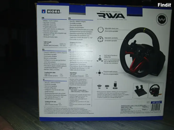 Hori RWA on langaton rattiohjain ja poljinsetti PlayStation‑konsoleille. Paketissa on ohjauspyörä, jossa on sisäänrakennetut PlayStation‑painikkeet sekä erillinen poljinmoduuli kaasulle ja jarrulle. Ohjain toimii langattomasti yhteensopivien PlayStation‑järjestelmien kanssa ja soveltuu ajopelien ohjaamiseen kotikäytössä.