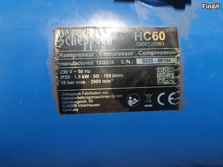 säljes kompressor pga behov av större.
