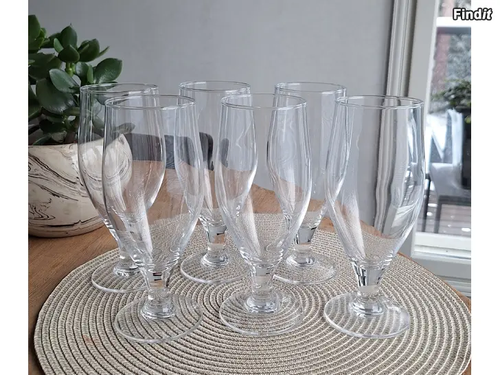 Öl- eller smoothieglas i ypperligt skick. Finns och hämtas från Sundom, 6 st till paketpris 10 euro.