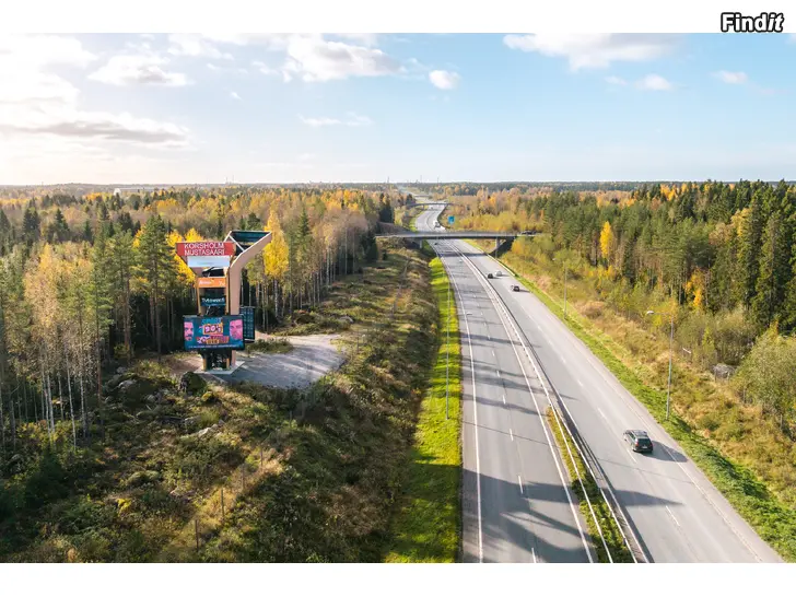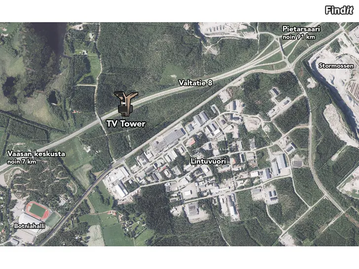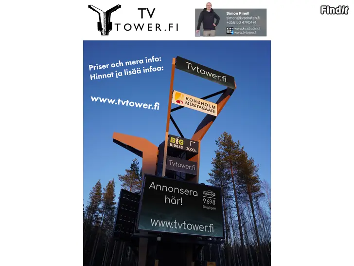 TV Tower finns bredvid riksåttan i Korsholm, mellan Botniahallen och Stormossen, och här förbi kör dagligen cirka 9 700 fordon. Pylonen är utrustad med två kraftiga 26 m2 LED-skärmar i båda riktningarna norrut och söderut, och vi har även fasta annonsplatser med banderoller i olika storlekar.