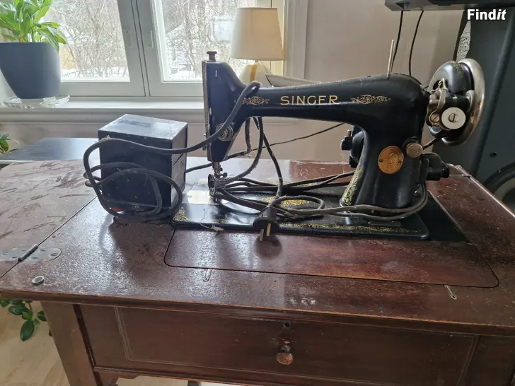 Säljes singer symaskin nerfällt i bord som kan användas som dekoration och/eller möbel. Symaskinen är inte testad om den fungerar.