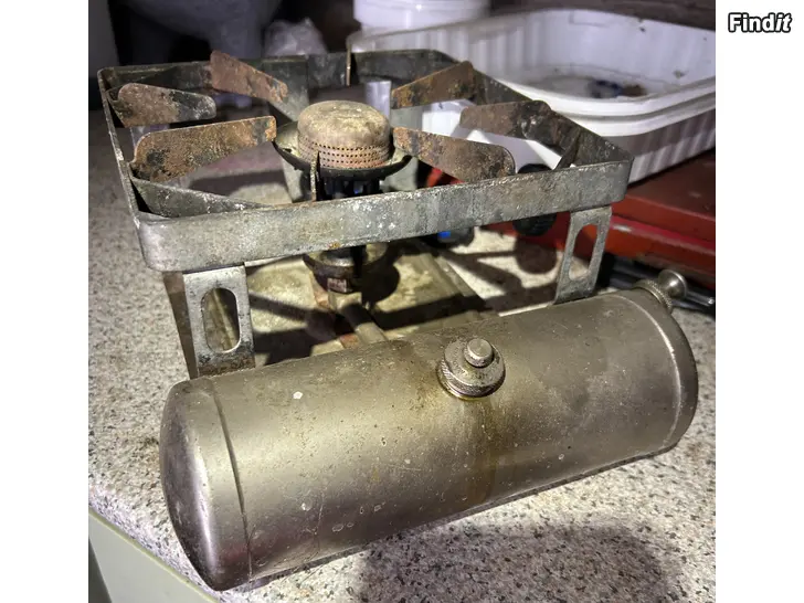 Fint skick med tanke på åldern, Modellen eventuellt Svea 53, oklart. Har inte testat om den funkar men är väl mera en prydnad numera