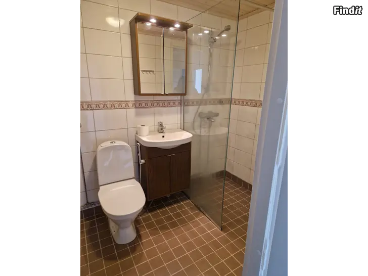 57.5 kvm. Kök, egen bastu, biltak och liten terrass.