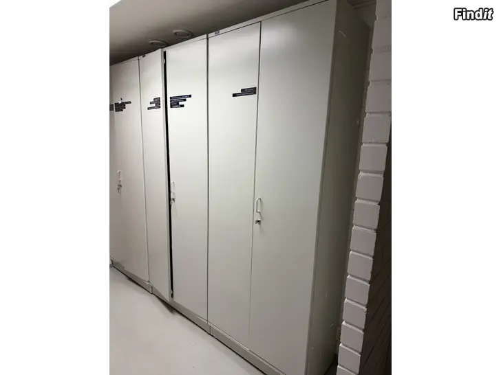 Stabila GWS-plåtskåp. 80x210 cm. Låsbara och i mycket bra skick. Finns 6st. 50€/st. Hämtas från Jakobstad. Egna bärare med.
