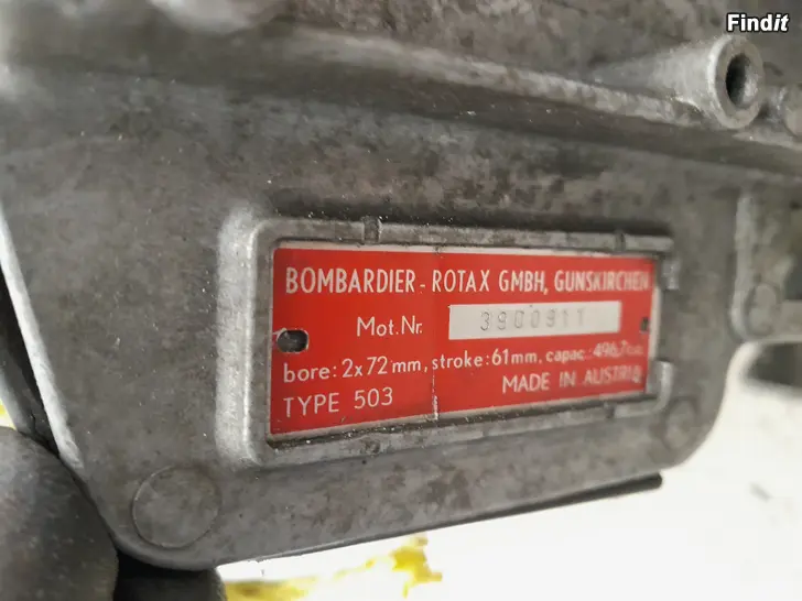 Rotax 503 motor, passar bl.a. flertalet olika snöskotrar. Bp. 580€. Lyssnar på bud.