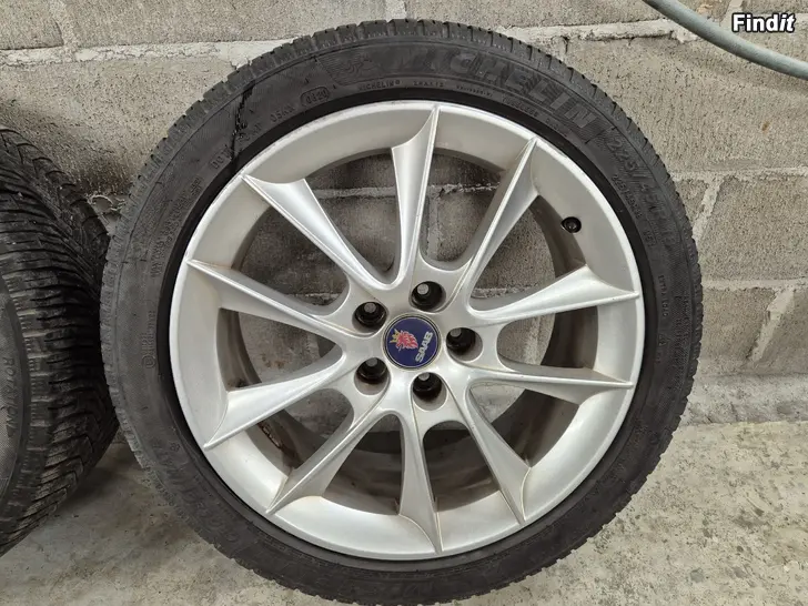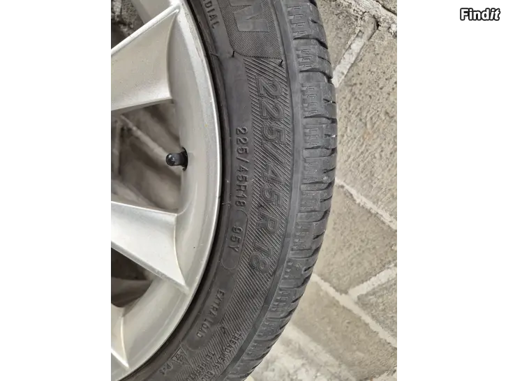 Raka och fina 18 tums originalfälgar i fint skick. Ena fälgen lite kantstött, se bild. Michelin Crossclimate åretrunt däck 225/45. mönsterdjup 3-4 mm, tillverkade 2020