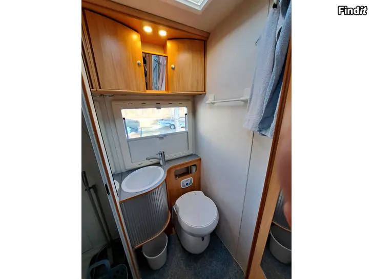 Nu säljer vi vår familjemedlem eftersom den de senaste åren knappt blivit använd. Pedant skött, regelbundet servad och förvarad i varm hall året runt när den inte använts vilket är ca.350 dagar i året. Bra planerad med mycket förvaringsutrymme och 2 fullstora sängar. Även bordet går att bädda ut för ytterligare 2 sovplatser. Invändigt i väldigt fint skick. Stort kylskåp och gasugn. Alla lampor på insidan utbytta från halogen till led. Tv och antenn ufo finns. Stor markis.