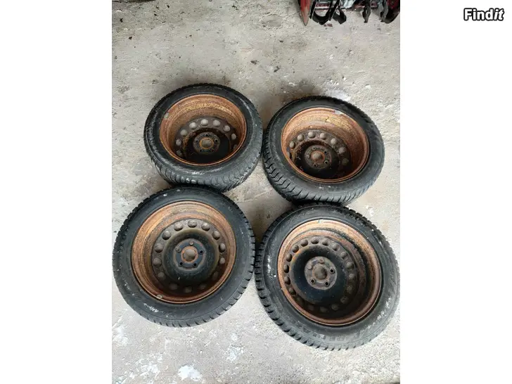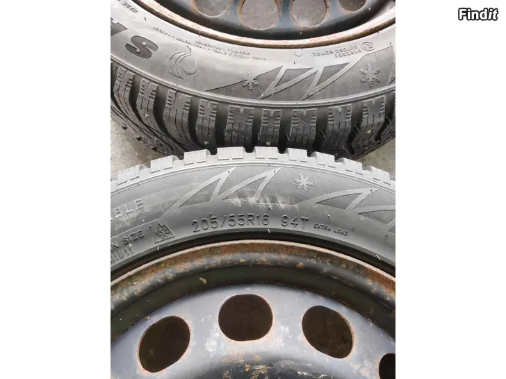 205/55 16 tums Plåtfälgar med dåliga vinterdäck, Bultmönster 5x112 Centrumhål 57,1