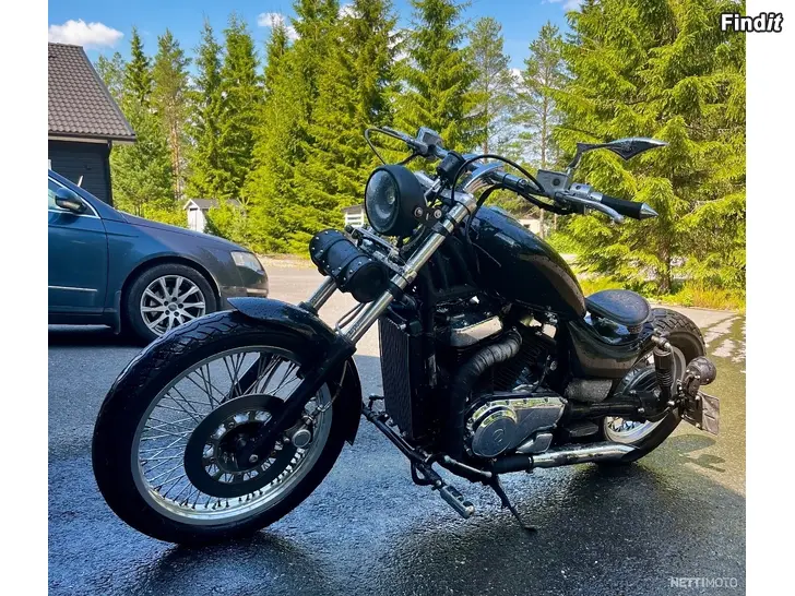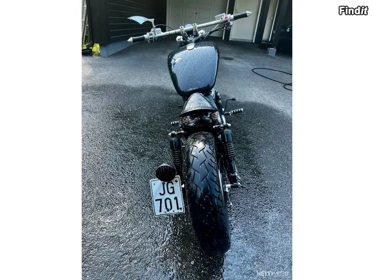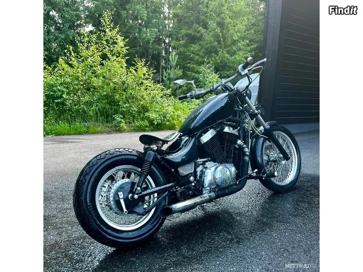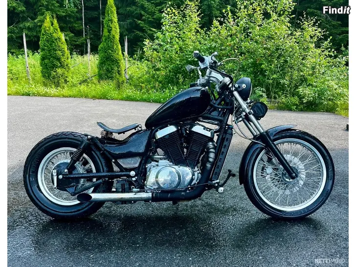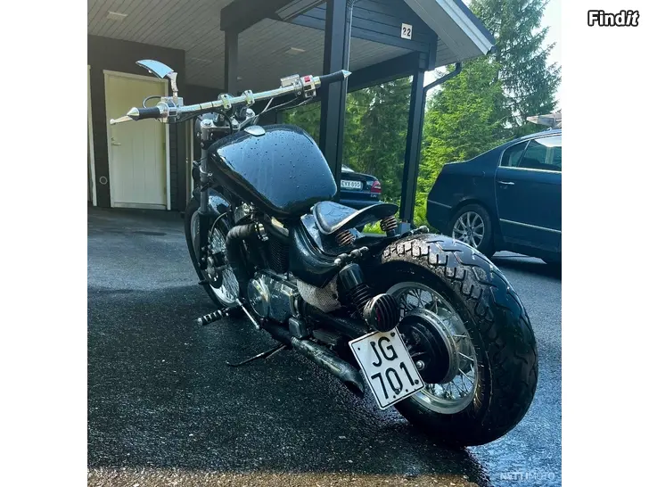 Till salu en lite mer speciell Intruder. Bred och låg, med bra mullrande ljud. Tanken är från en Honda – fästet kunde förbättras lite, men det funkar som det är också.