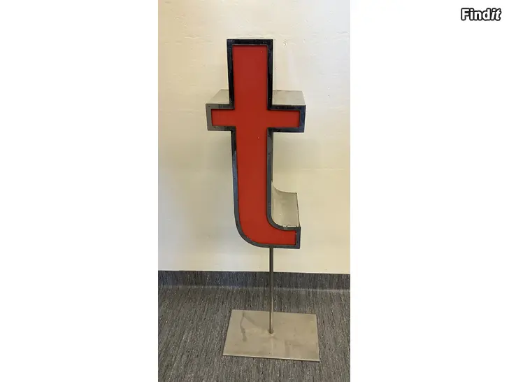 Myydään vanha mainoskirjain jalustalla. Sisään saa asennettua myös valon tarvittaessa. Korkeus 92cm.