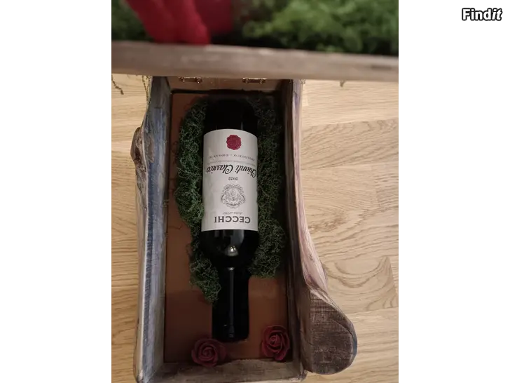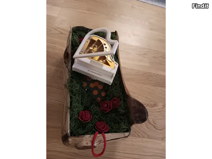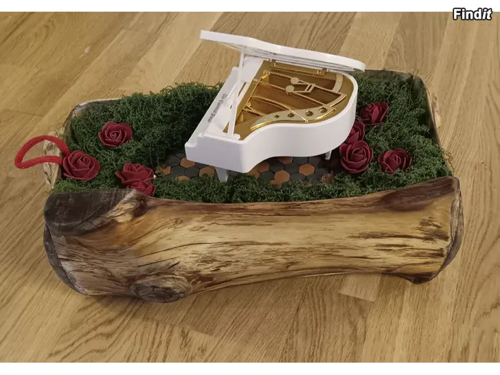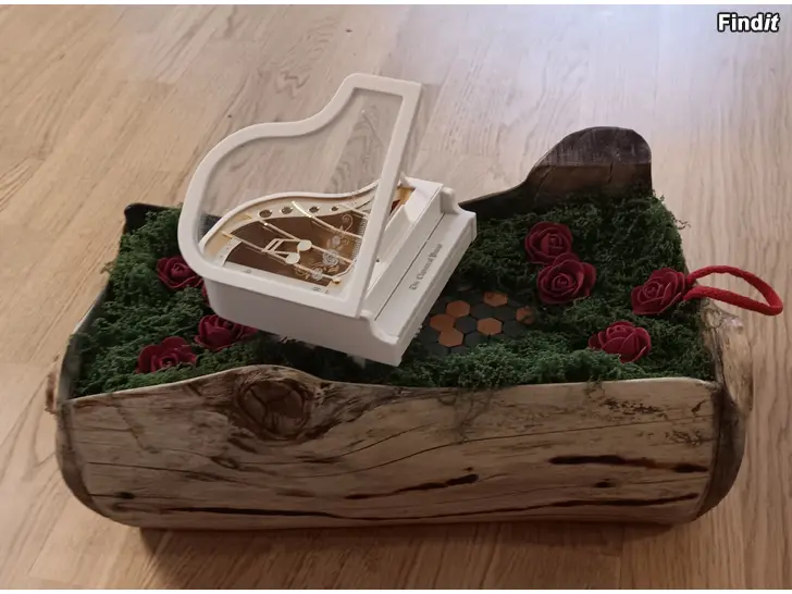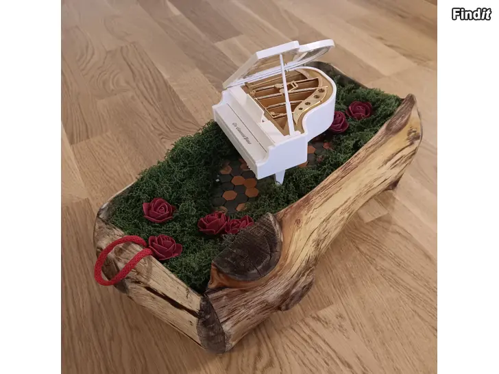 Handgjord blomlåda i äkta trä, ett unikt artesan-hantverk dekorerat med mossa, rosor.
